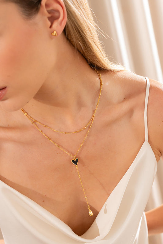 Set X2 Collares Corazón Negro Gota + Aretes