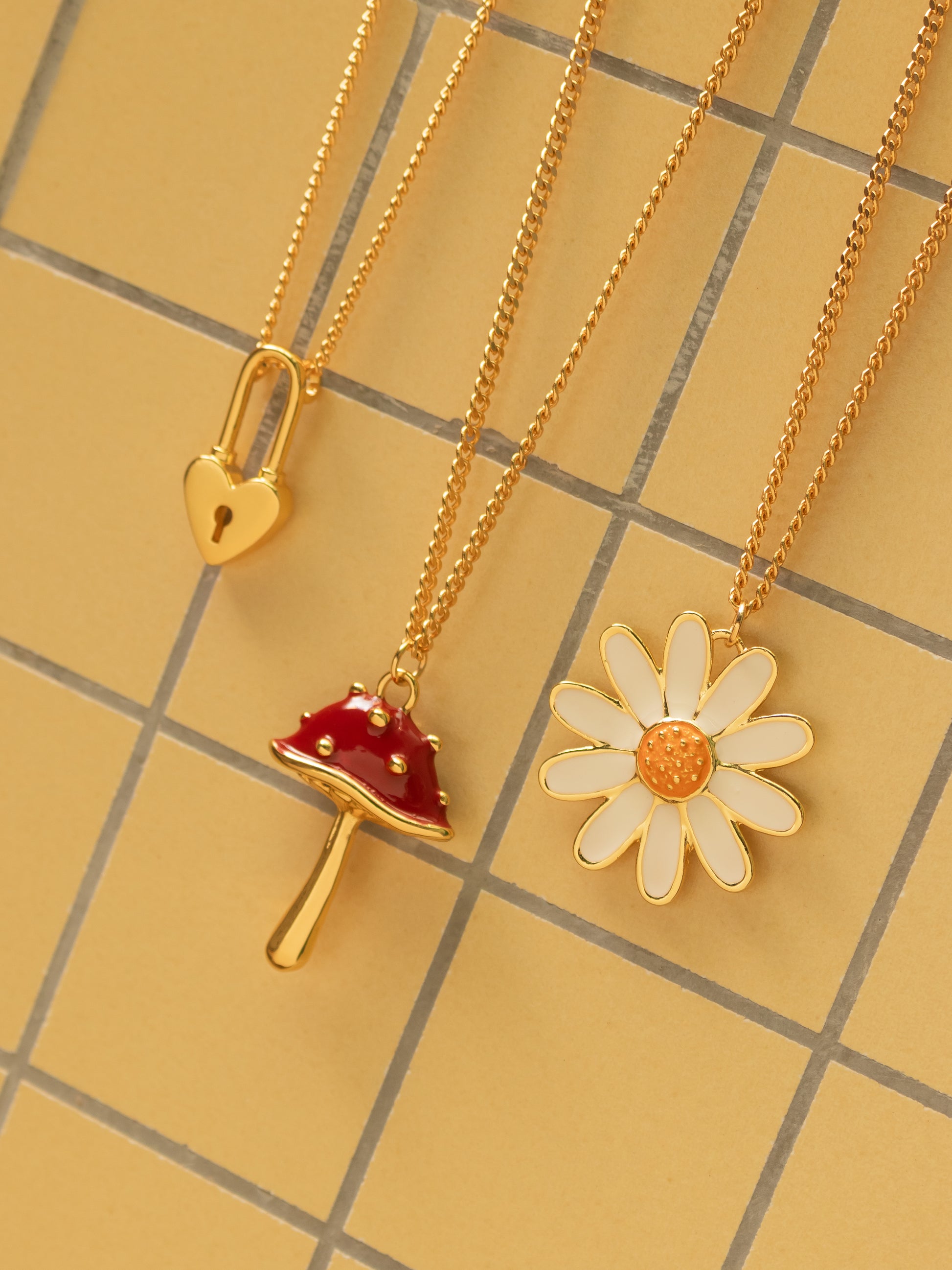 - Dijes del collar en Zamak (aleación de metales) con baño de oro de 24k.