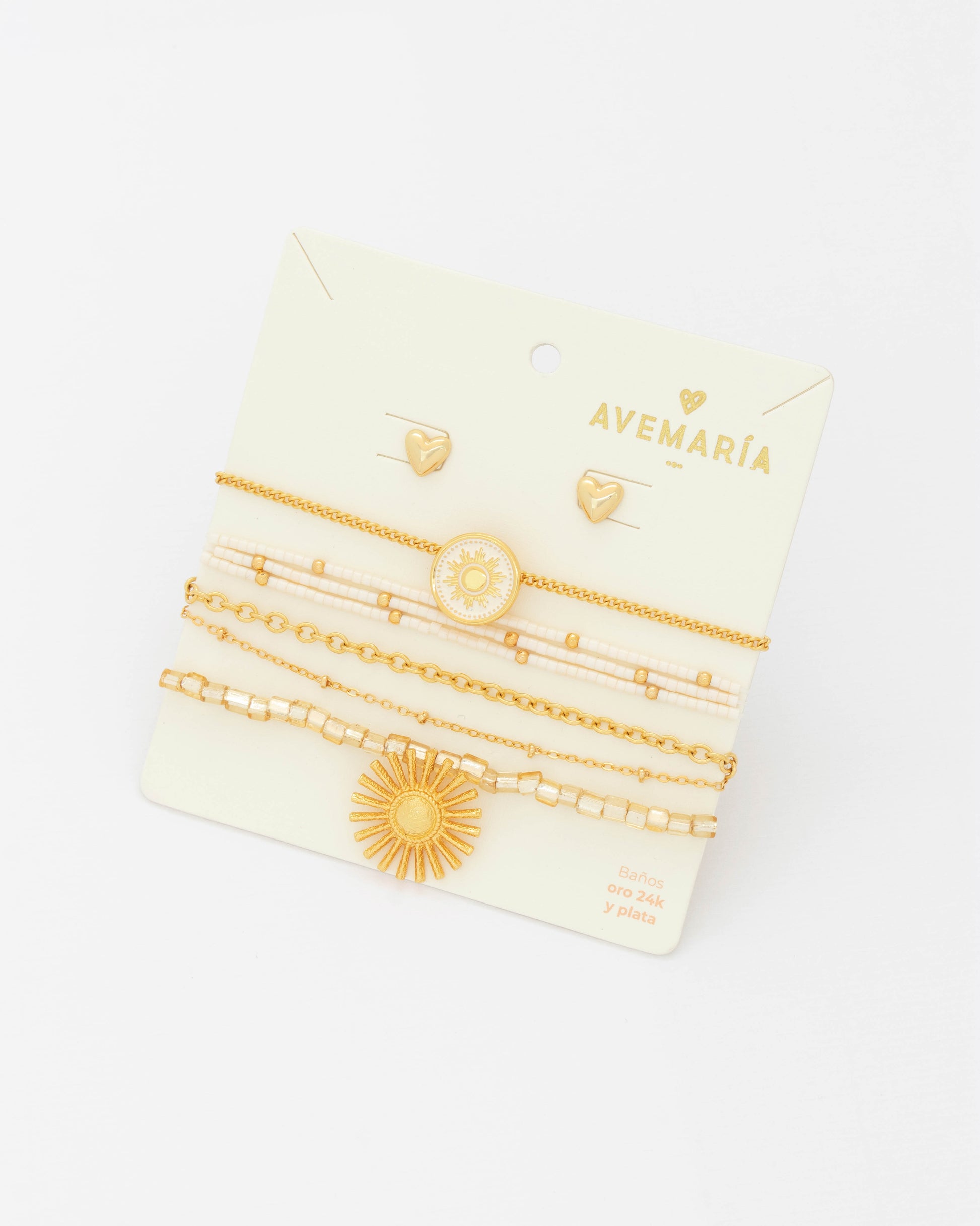 - Incluye: 4 pulseras y 1 par de aretes tipo topos (aretes pequeños).
